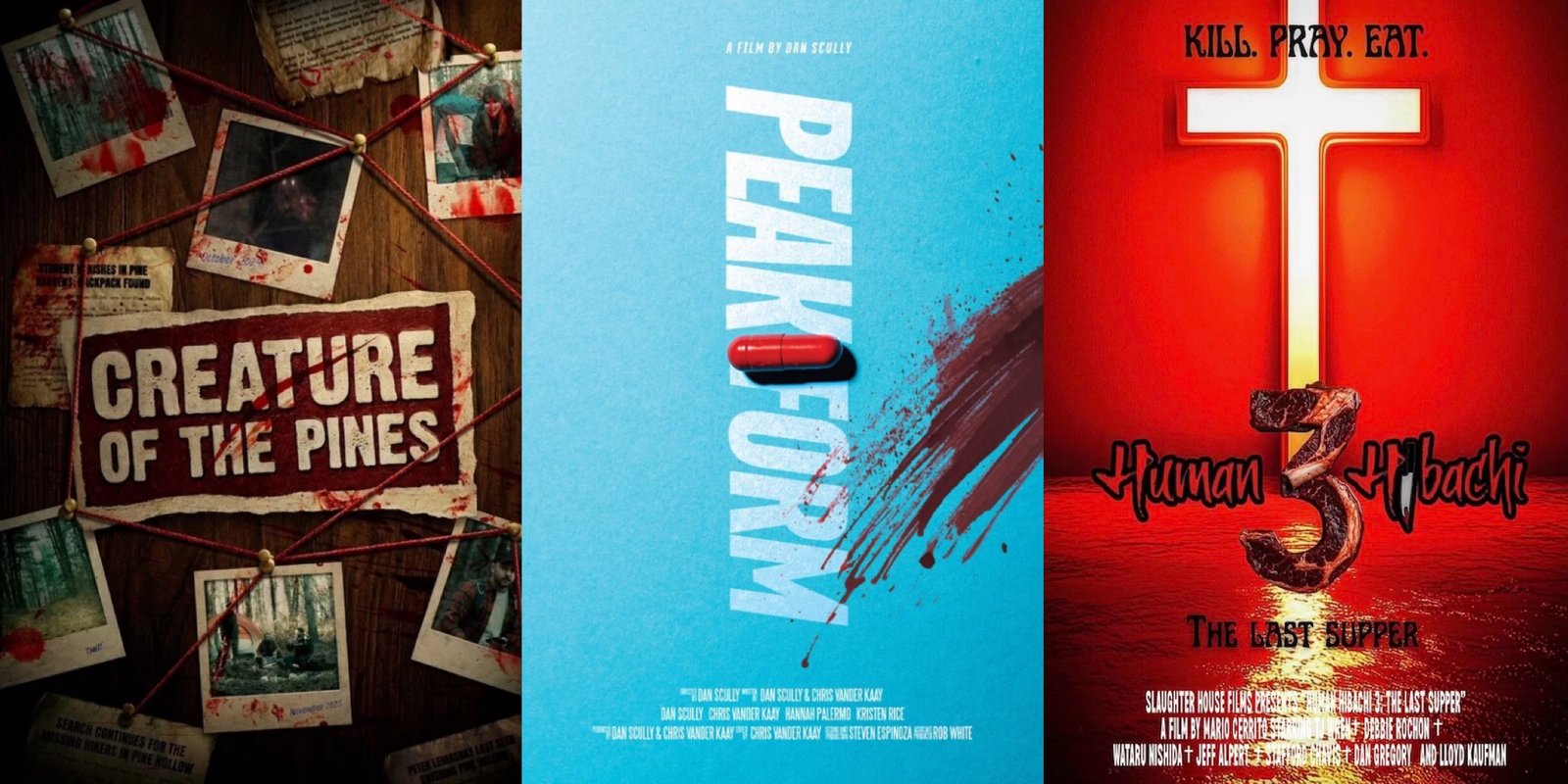The first 3 titles have been selected with early showings of Chris Ruppert and Tyler Transue’s Creature of the Pines and Dan Scully’s debut feature Peak Form, as well as Human Hibachi 3: The Last Supper – the third installment of Mario Cerrito’s instant classic trilogy of crazy cannibals (which you can also watch on Found TV).